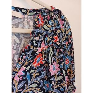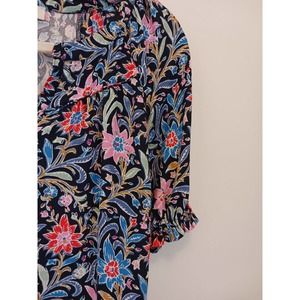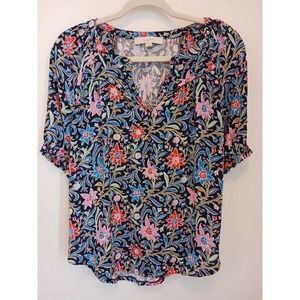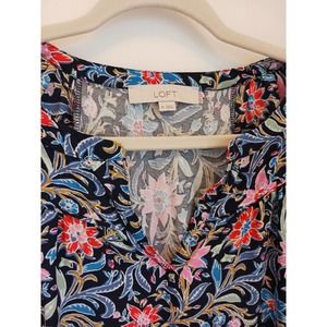 Loft Size XS Floral Flutter Sleeve Navy Pink Red Green EUC Fast Shipping.