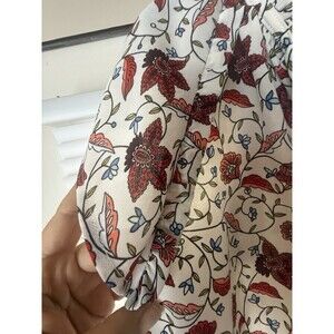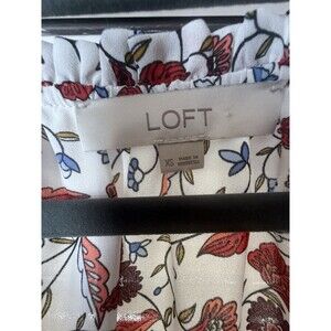 Loft Size XS Womens Floral Tie Short Ruffle Sleeve Pleated Back Blouse