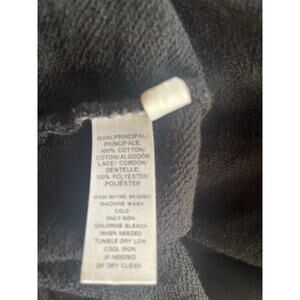 Gorgeous black crewneck sweater with applique accented cut-out shoulders, It is long sleeve and 100% cotton.