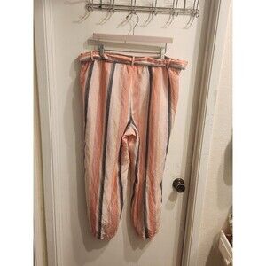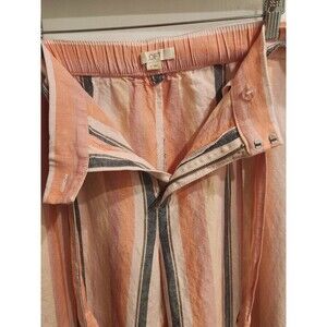 Loft SizeMedium Linen Blend Striped Tie Waist Wide Leg Pocket Pants Coastel