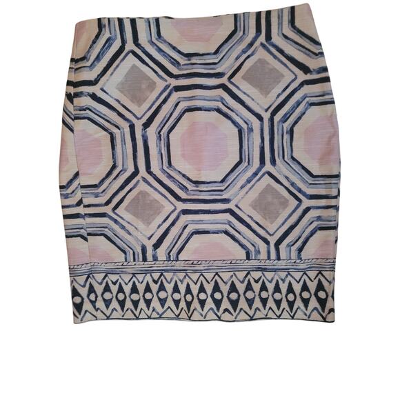 Loft Skirt Tan/Blue Back Zip/Slit Sz 8