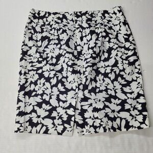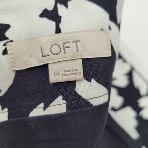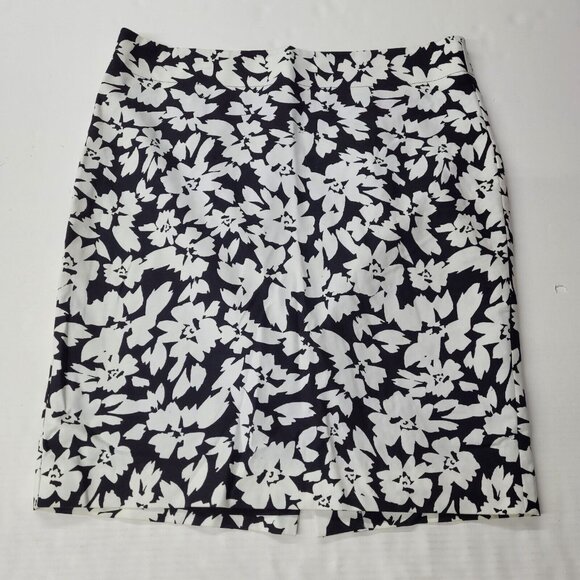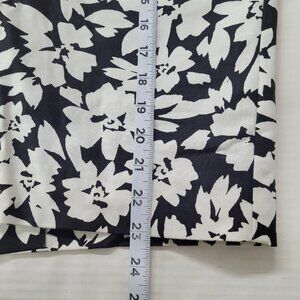 Loft Skirt Women14 Black White Floral Lined Pencil Back Slit Skirt Office
