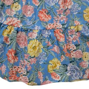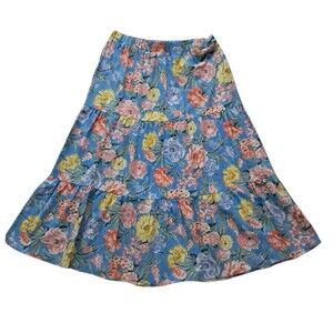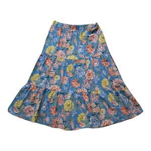 Loft Skirt Women's Large Blue Midi Floral Tiered Pull On Linen Blend Cottagecore
