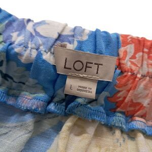 Loft Floral Tiered Pull On Midi Skirt Women's size large. Light Blue. Elastic waist. Linen blend. Cottagecore feminine.