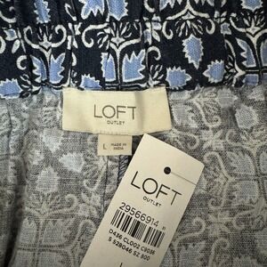 Loft Skirt Womens Large Blue White Floral Flowers Linen Blend Casual Career