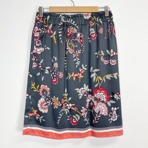 Loft Skirt Womens Size XS Gray Pink Floral Pull On Stretch Waist