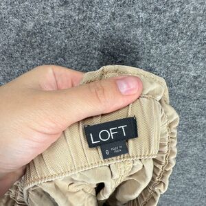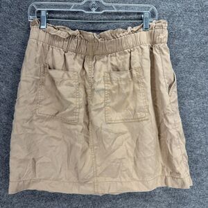 Loft Skkirt Women 8 Beige A-Line Midi Pockets Button Elastic Waist Mid Rise