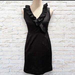 Loft Sleeveless Cotton Ruffle V Neck Dress Black Women's Size 2P 2 Petite