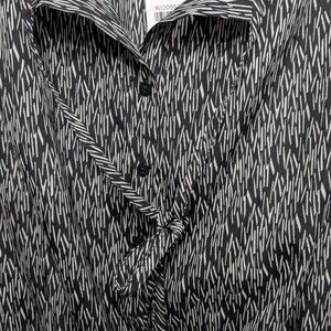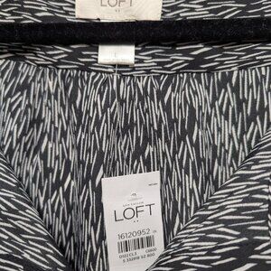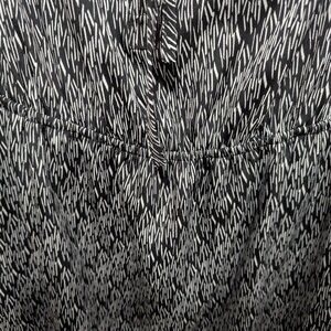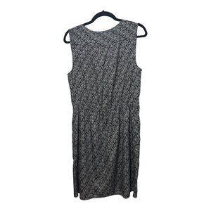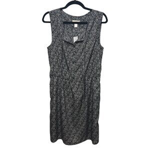 Cool, comfortable black and white sleeveless Loft dress - size L. This dress has a 36" elastic waist that stretches to 44". 37" length from shoulder. 100% poly and skirt is lined. Hard to tell from the photos, but there is a tie and buttons in the front of the dress.