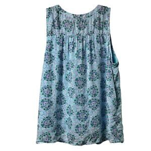 Size medium pale blue fully lined flowy floral print sleeveless top in excellent used condition. 100% rayon.
