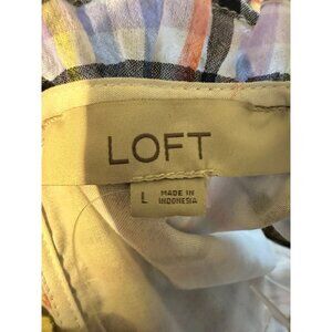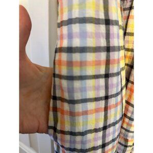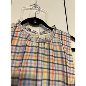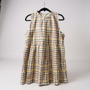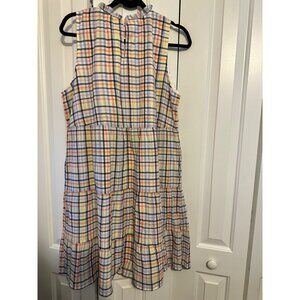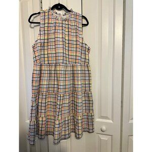 Loft Sleeveless Pastel Plaid Tiered Dress With Ruffle Neckline L