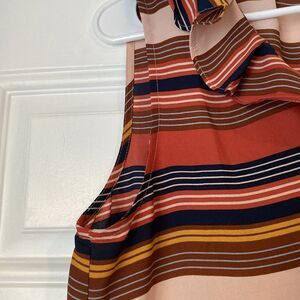 Loft Sleeveless Ruffle Collar Striped Blouse Size Small