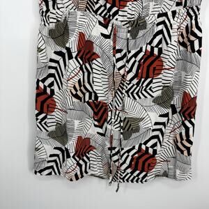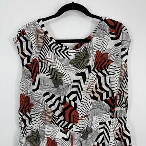 Loft Sleeveless Tropical Print Dress Size XL Elastic Tie Waist Crinkle Rayon