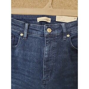 Loft Slim Flare Curvy Fit Jeans Womens 31 12 Blue Dark Wash Stretch NEW Please check measurements below before purchasing. WAIST LAID FLAT 15.5" LEG OPENING 11.5" RISE 12" INSEAM 32"