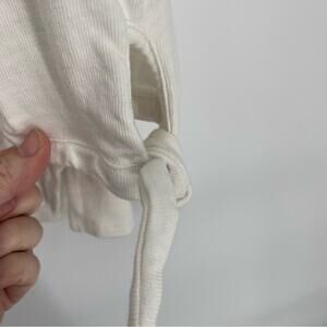 Loft Slub Knit White U-Neck 3/4 Raglan Tie Sleeve 100% Cotton Knit Top Coastal L