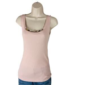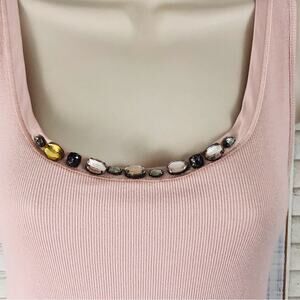 Loft Soft Pink Blush Sleeveless Tank Top Embellished Feminine Scoop Neck