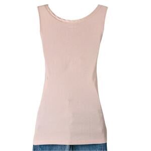 Loft Soft Pink Sleeveless Tank Top Embellished Scoop Neck Feminine Ribbed Textured Fabric