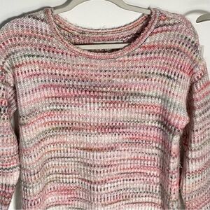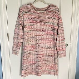 Loft Spacedye Pink Green Marled Knit Long Sleeves Mini Sweater Dress Size XS
