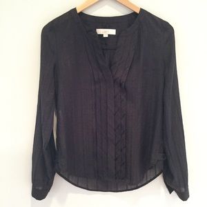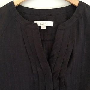 Split collar semi sheer blouse in soft black with delicate silver stripes by Loft. Size XS
