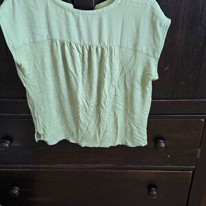 Loft Split Neck Mixed Media Top Bay Green Cropped XS