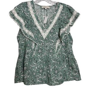Loft Spring Bloom Lacy Ruffle Peplum Top Size Small