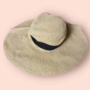Loft Straw Floppy Hat Black Ribbon Sun Hat Beachy Wide Brim