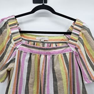 Loft Stripe Flutter Sleeve Square Neck Breathable Cotton Top Womens Size Large