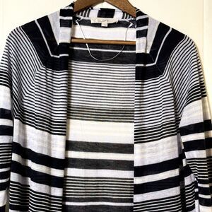 Loft Stripe Open Long Cardigan Lightweight Blue and White Large