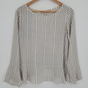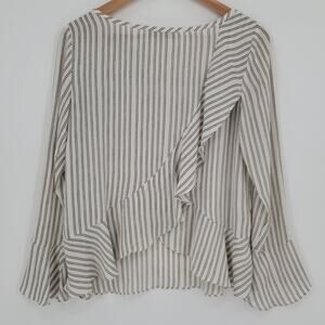 Loft Striped Blouse Career Office Business Casual Professional Ruffle Size XS