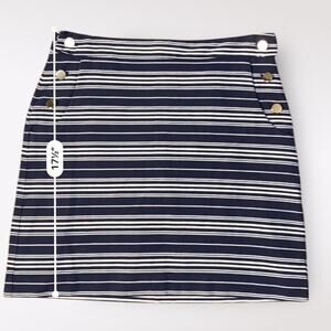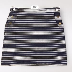 Loft Striped Buttoned Cotton Mini Pencil Skirt Size 8 Blue White
