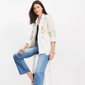 Loft Striped Cotton Linen Double Breasted Blazer in Whisper White NWT