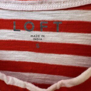 Loft Striped Everyday Crew Tee Red And White Size Small 100% Cotton