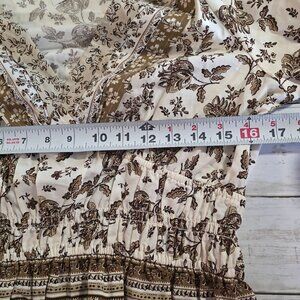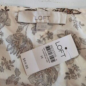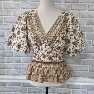 Loft Striped Floral Pintucked V-Neck Peplum Blouse Puff Sleeve Cottage NEW M
