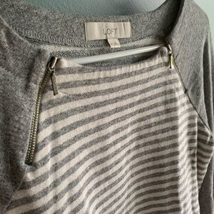 LOFT Striped Lightweight Sweatshirt Gray Extra Small