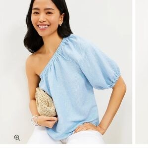 Loft Striped One Shoulder Linen Blend Blouse Size Small NWT