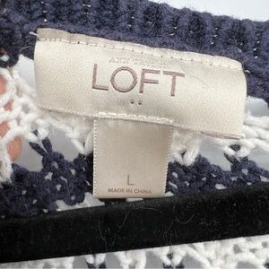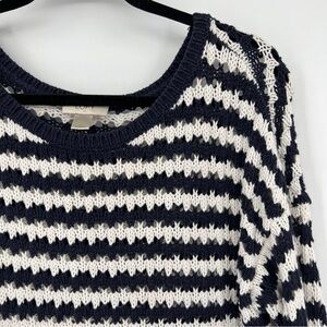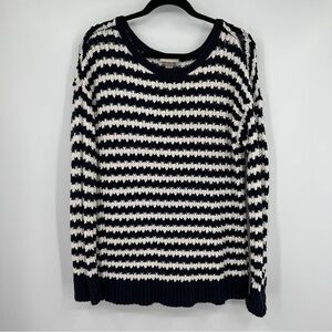 Loft Striped Ribbed Open Knit Roundneck Long Sleeve Casual Popover Sweater