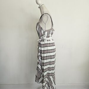 Loft Striped Ruffle Faux Wrap Dress