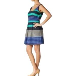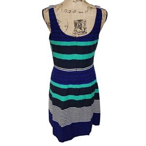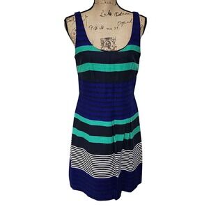 Loft Striped Sleeveless Dress Casual Summer Party Cocktail Blue Green White 6