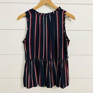 Loft Striped Sleeveless Silky Peplum Ruffle Top Blouse, Women's Size Small