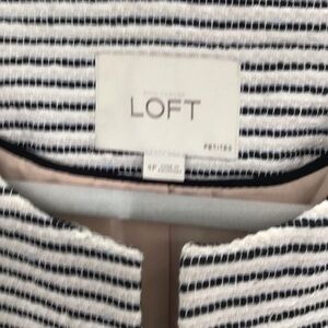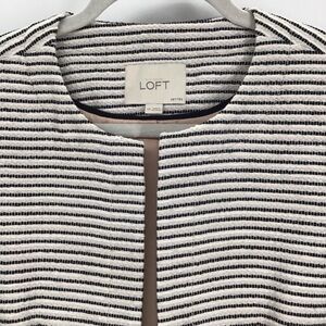 Loft Striped Suit Jacket Blazer Open Front Lightweight Black/Creme Size 4 Petite