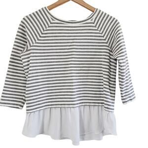 Loft striped top. Mesh trim. Size XS. Length is 22.5 inches. 18 inches pit-to-pit. Colors are black and white.