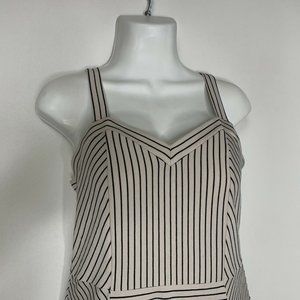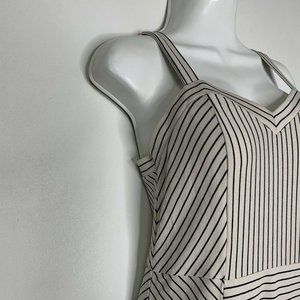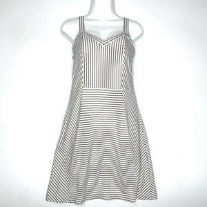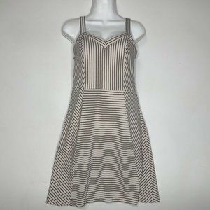 Loft Striped Zip Up Straps Black Tan Empire Waist Women Dress Sz 4 Petite Summer