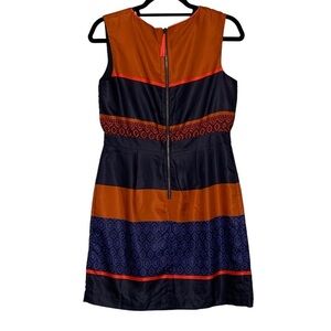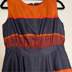Loft navy, red and rust paisley teardrop print with alternating stripes dress. Zipper closure in back. Lined. Great for office, silky feel, a-line dress. Perfect for everyday office work wear! 100% polyester. Size 4P