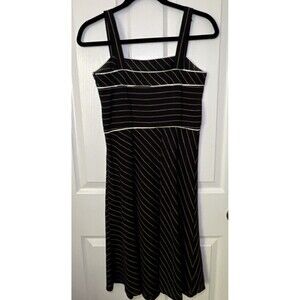 Loft Sundress Size 2 Black and White Pinstripe Fit Flare Linen Blend Graduation