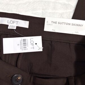 Loft Sutton Skinny Curvy Ankle Pants Stretch Preppy Work Career Brown Size 8 NWT