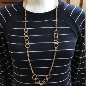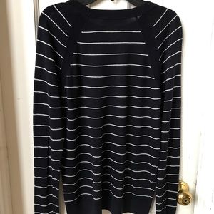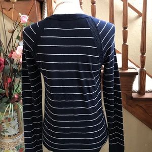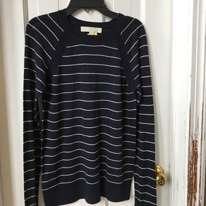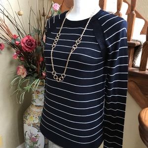 This Navy Blue White Taylor Loft Womens Pullover Sweater Stripe Print Crewneck is size x-small.