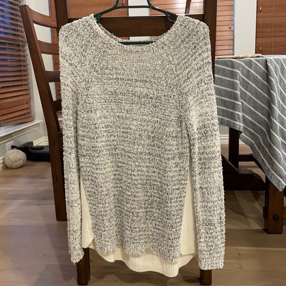 Heather Grey Loft sweater with a cream knit-style back…perfect for Fall! Slightly longer in the back.