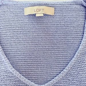 Loft v-neck sweater with 3/4 length flared sleeve. Ramie and cotton. The color is a bluish lavender. Like new!