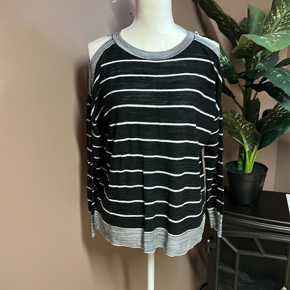 Open shoulder sweater. Never worn. Great condition. Black and white striped