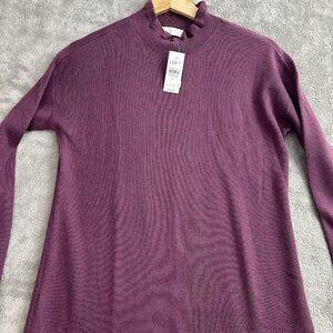 Loft Sweater Dress Womens Small Knit Mock Neck Purple Midi Casual Long Sleeve